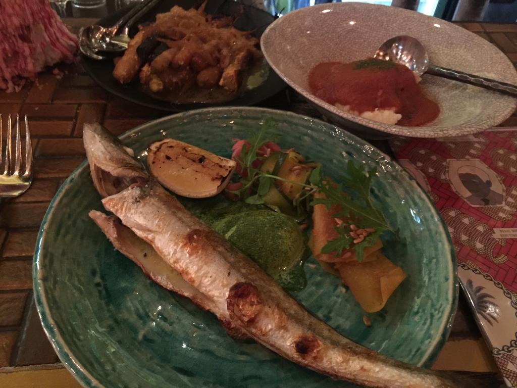 The fish is King George Whiting. It has a very pleasant, buttery taste, despite being simple, fried fish. However, there are so many microscopic bones that the dish becomes painfully laborious to eat. There comes a point where there's a lot of meat left, but it has rows of detached bones in it. Despite my careful autopsy, I have to give up.