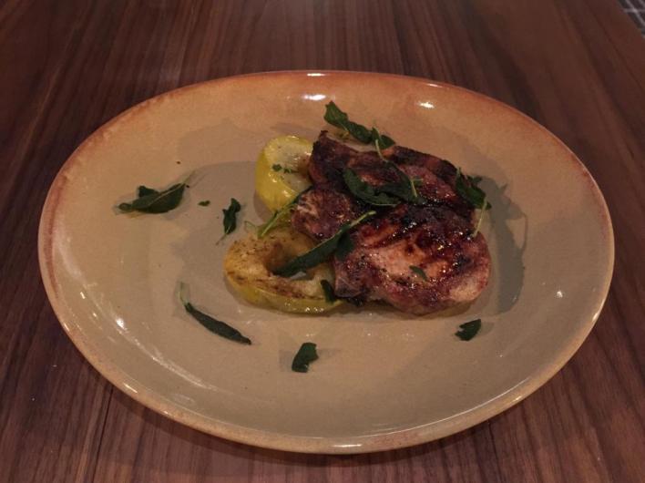 This chop is at least medium. At the risk of carrying on like a pork chop, this pork chop is nothing more than a pork chop. It has no other flavours. The sage is so tasteless that I can eat the leaves on their own, and not really taste them.
