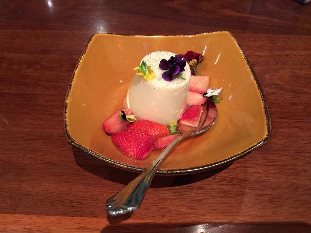 This has a simple cream flavour. However, the orange brandy's alcohol taste isn't a good match. I was looking for some tangy and contrasting berries with my panna cotta, not a weird alcohol taste. It fights with the vanilla.