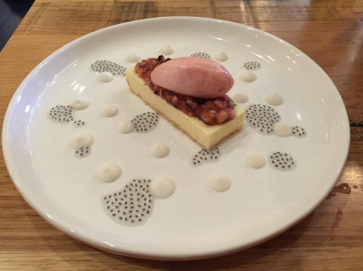 This is a very complex group of tastes. The cheesecake has only a light lime flavour, but that's enough. It serves as a good base for the many other flavours in the dish.