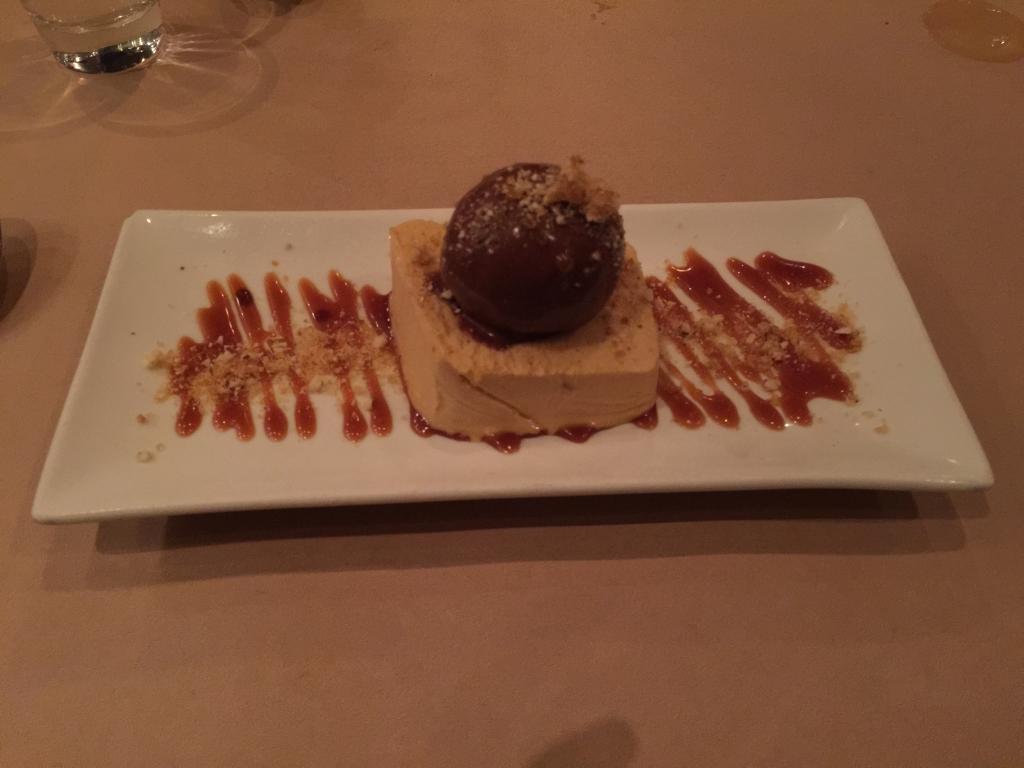 Chocolate sorbet, salted caramel, cocoa nib crumble & pistachio praline.