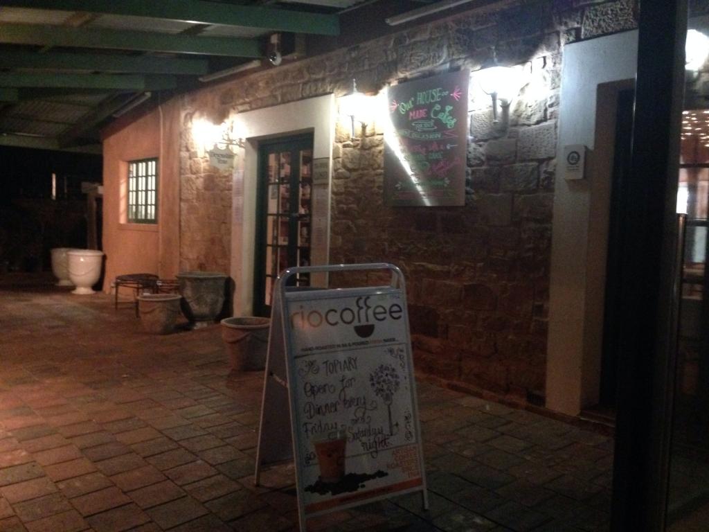 I've been along this dingy road before, looking for a restaurant. After a visit to the local hotel, I find my way to the Topiary Cafe.